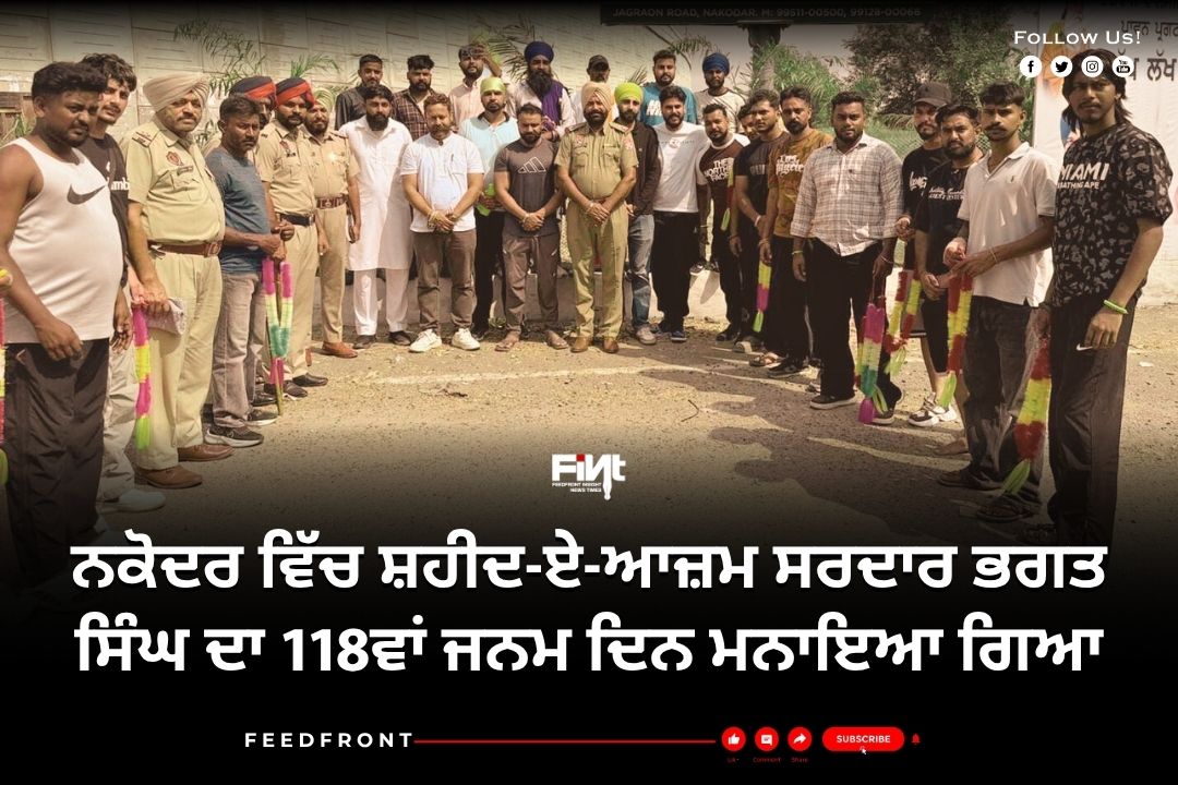 ਨਕੋਦਰ: ਸ਼ਹੀਦ-ਏ-ਆਜ਼ਮ ਸਰਦਾਰ ਭਗਤ ਸਿੰਘ ਸਪੋਰਟਸ ਕਲੱਬ, ਨਕੋਦਰ ਵੱਲੋਂ ਅੱਜ ਸ਼ਹੀਦ ਭਗਤ ਸਿੰਘ ਚੌਂਕ ਵਿਖੇ ਦੇਸ਼ ਦੇ ਮਹਾਨ ਸ਼ਹੀਦ ਸਰਦਾਰ ਭਗਤ ਸਿੰਘ ਜੀ ਦਾ 118ਵਾਂ ਜਨਮਦਿਨ ਪੂਰੇ ਉਤਸ਼ਾਹ ਨਾਲ ਮਨਾਇਆ ਗਿਆ। ਇਸ ਮੌਕੇ ‘ਤੇ ਕਲੱਬ ਦੇ ਮੈਂਬਰਾਂ ਨੇ ਸ਼ਹੀਦ ਭਗਤ ਸਿੰਘ ਜੀ ਦੀ ਪ੍ਰਤਿਮਾ ‘ਤੇ ਸਿਰੋਪਾਓ ਪਹਿਨਾ ਕੇ ਫੁੱਲਾਂ ਦੇ ਹਾਰ ਪਾਏ ਅਤੇ ਸ਼ਰਧਾ ਭੇਟ ਕਰਦਿਆਂ ਲੱਡੂ ਵੰਡੇ ਗਏ।