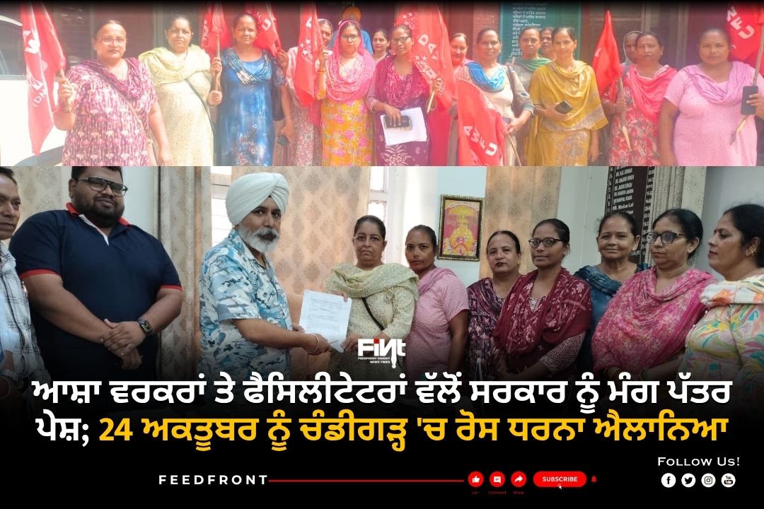 ਜਲੰਧਰ: ਪੰਜਾਬ ਵਿੱਚ ਪੇਂਡੂ ਸਿਹਤ ਸੇਵਾਵਾਂ ਦੀ ਰੀੜ੍ਹ ਦੀ ਹੱਡੀ ਮੰਨੀ ਜਾਂਦੀਆਂ ਆਸ਼ਾ ਵਰਕਰਾਂ ਤੇ ਫੈਸੀਲੀਟੇਟਰਾਂ ਨੇ ਆਪਣੀਆਂ ਲੰਬਿਤ ਮੰਗਾਂ ਅਤੇ ਸਮੱਸਿਆਵਾਂ ਨੂੰ ਲੈ ਕੇ ਸਰਕਾਰ ਅੱਗੇ ਇੱਕ ਵਿਆਪਕ ਮੰਗ ਪੱਤਰ ਪੇਸ਼ ਕੀਤਾ ਹੈ। ਯੂਨੀਅਨ ਨੇ ਸਪੱਸ਼ਟ ਚੇਤਾਵਨੀ ਦਿੱਤੀ ਹੈ ਕਿ ਜੇਕਰ 24 ਅਕਤੂਬਰ 2025 ਤੋਂ ਪਹਿਲਾਂ ਇਨ੍ਹਾਂ ਮੰਗਾਂ ‘ਤੇ ਗੰਭੀਰ ਗੱਲਬਾਤ ਸ਼ੁਰੂ ਨਾ ਹੋਈ, ਤਾਂ ਉਸੇ ਦਿਨ ਪਰਿਆਸ ਭਵਨ, ਚੰਡੀਗੜ੍ਹ ਸਾਹਮਣੇ ਰਾਜ ਪੱਧਰੀ ਰੋਸ ਧਰਨਾ ਦਿੱਤਾ ਜਾਵੇਗਾ।