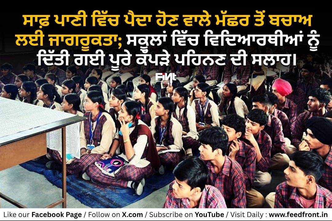 ਸਕੂਲਾਂ ਵਿੱਚ ਵਿਸ਼ੇਸ਼ ਫੋਕਸ ਕਿਉਂਕਿ ਡੇਂਗੂ ਦਾ ਮੱਛਰ ਦਿਨ ਦੇ ਸਮੇਂ ਕੱਟਦਾ ਹੈ, ਇਸ ਲਈ ਵਿਭਾਗ ਨੇ ਮਾਪਿਆਂ ਨੂੰ ਖਾਸ ਤੌਰ ‘ਤੇ ਅਪੀਲ ਕੀਤੀ ਹੈ ਕਿ ਉਹ ਸਕੂਲ ਜਾਣ ਵਾਲੇ ਬੱਚਿਆਂ ਨੂੰ ਪੂਰੀ ਤਰ੍ਹਾਂ ਸਰੀਰ ਢੱਕਣ ਵਾਲੇ ਕੱਪੜੇ ਪਾ ਕੇ ਭੇਜਣ।