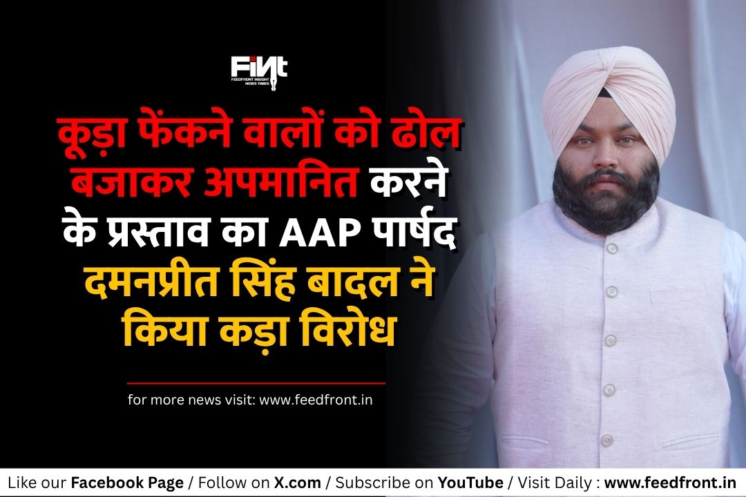चंडीगढ़: नगर निगम चंडीगढ़ द्वारा सार्वजनिक स्थानों पर कूड़ा फेंकने वाले नागरिकों को ढोल-नगाड़े बजाकर सार्वजनिक रूप से बदनाम करने की प्रस्तावित कार्रवाई का आम आदमी पार्टी (AAP) के पार्षद दमनप्रीत सिंह बादल ने कड़ा विरोध किया है। उन्होंने इस कार्रवाई को गलत और असंवेदनशील बताया है, और कहा है कि यह न तो सामाजिक रूप से उचित है और न ही कानूनी रूप से।