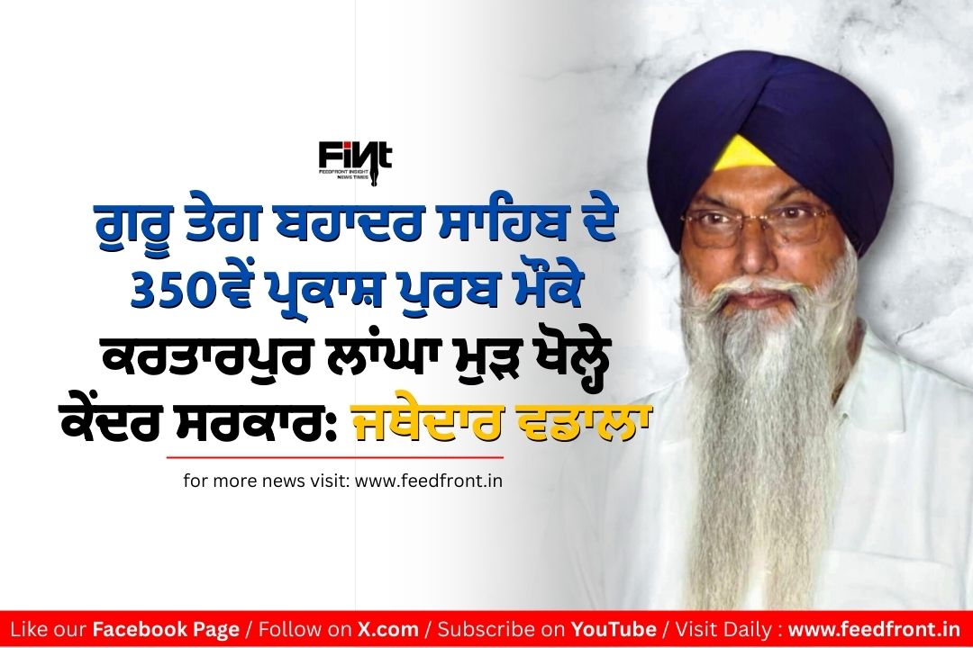 ਇੱਥੇ ਜਾਰੀ ਇੱਕ ਬਿਆਨ ਵਿੱਚ ਜਥੇਦਾਰ ਵਡਾਲਾ ਨੇ ਕਿਹਾ ਕਿ ਪੂਰੀ ਦੁਨੀਆ ਵਿੱਚ ਸਿੱਖ ਪੰਥ ਵੱਲੋਂ ਗੁਰੂ ਤੇਗ ਬਹਾਦਰ ਸਾਹਿਬ ਜੀ ਦੀ 350 ਸਾਲਾ ਸ਼ਤਾਬਦੀ ਬੜੀ ਸ਼ਰਧਾ ਤੇ ਉਤਸ਼ਾਹ ਨਾਲ ਮਨਾਈ ਜਾ ਰਹੀ ਹੈ। ਗੁਰੂ ਸਾਹਿਬ ਦੀ ਧਰਮ ਦੀ ਰਾਖੀ ਲਈ ਦਿੱਤੀ ਲਾਸਾਨੀ ਸ਼ਹਾਦਤ ਅਤੇ ਉਨ੍ਹਾਂ ਦੇ ਜੀਵਨ ਫਲਸਫੇ ਨੂੰ ਉਜਾਗਰ ਕਰਨ ਲਈ ਸਰਕਾਰਾਂ ਅਤੇ ਸਿੱਖ ਸੰਸਥਾਵਾਂ ਵੱਲੋਂ ਵੱਡੇ ਪ੍ਰੋਗਰਾਮ ਉਲੀਕੇ ਗਏ ਹਨ। ਉਨ੍ਹਾਂ ਕਿਹਾ ਕਿ ਇਸ ਇਤਿਹਾਸਕ ਸਮੇਂ ਨੂੰ ਮੁੱਖ ਰੱਖਦਿਆਂ ਅਤੇ ਸਿੱਖਾਂ ਦੀਆਂ ਭਾਵਨਾਵਾਂ ਦੀ ਕਦਰ ਕਰਦਿਆਂ ਕੇਂਦਰ ਸਰਕਾਰ ਨੂੰ ਕਾਫੀ ਸਮੇਂ ਤੋਂ ਬੰਦ ਪਏ ਕਰਤਾਰਪੁਰ ਸਾਹਿਬ ਦੇ ਲਾਂਘੇ ਨੂੰ ਮੁੜ ਖੋਲ੍ਹਣ ਦਾ ਵੱਡਾ ਫੈਸਲਾ ਲੈਣਾ ਚਾਹੀਦਾ ਹੈ।