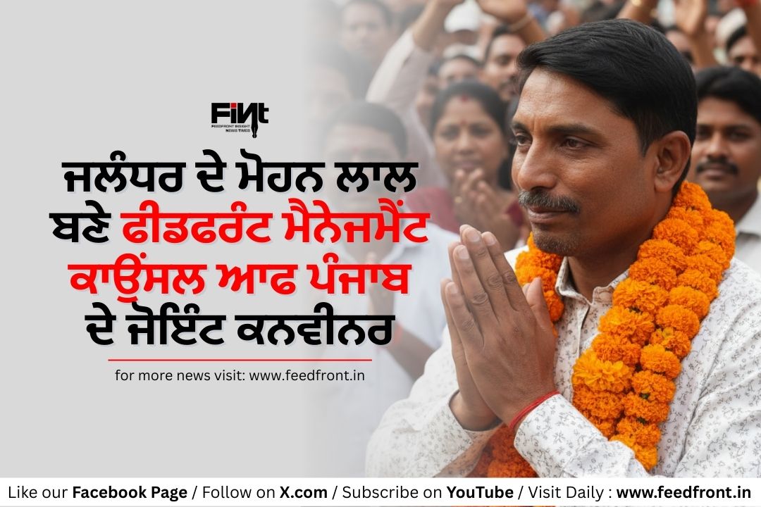ਜਲੰਧਰ: ਫੀਡਫਰੰਟ ਮੈਨੇਜਮੈਂਟ ਕਾਉਂਸਲ ਆਫ ਪੰਜਾਬ (FMCP) ਦੀ ਨਵੀਂ ਟੀਮ ਵਿੱਚ ਜਲੰਧਰ ਦੇ ਜਾਣੇ-ਮਾਣੇ ਤੇ ਬਹੁਤ ਹੀ ਸਾਦਗੀਪਸੰਦ ਪੱਤਰਕਾਰ ਮੋਹਨ ਲਾਲ ਨੂੰ ਜੋਇੰਟ ਕਨਵੀਨਰ ਨਿਯੁਕਤ ਕੀਤਾ ਗਿਆ ਹੈ। ਇਹ ਅਹੁਦਾ ਨਾ ਸਿਰਫ਼ ਉਨ੍ਹਾਂ ਦੀ ਪੱਤਰਕਾਰਿਤਾ ਦੀ ਕਾਬਲਿਯਤ ਦਾ ਸਬੂਤ ਹੈ, ਬਲਕਿ ਉਸ ਲੰਮੇ ਤੇ ਸੰਘਰਸ਼ਪੂਰਨ ਸਫ਼ਰ ਦੀ ਵੀ ਤਸਦੀਕ ਕਰਦਾ ਹੈ ਜੋ ਉਨ੍ਹਾਂ ਨੂੰ ਇਸ ਮਕਾਮ ਤੱਕ ਲੈ ਕੇ ਆਇਆ ਹੈ।