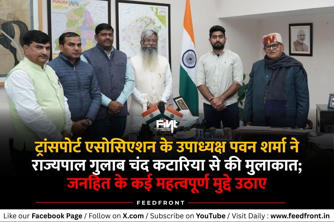 चंडीगढ़: चंडीगढ़ ट्रांसपोर्ट एसोसिएशन के उपाध्यक्ष एवं खादी ग्रामोद्योग बोर्ड, चंडीगढ़ के सदस्य पवन शर्मा ने हाल ही में महामहिम राज्यपाल पंजाब एवं चंडीगढ़ के प्रशासक श्री गुलाब चंद कटारिया जी से शिष्टाचार भेंट की। इस मुलाकात को क्षेत्रीय समस्याओं के समाधान की दिशा में एक महत्वपूर्ण कदम माना जा रहा है, जिसमें कई जनहित के मुद्दों पर सार्थक चर्चा हुई।