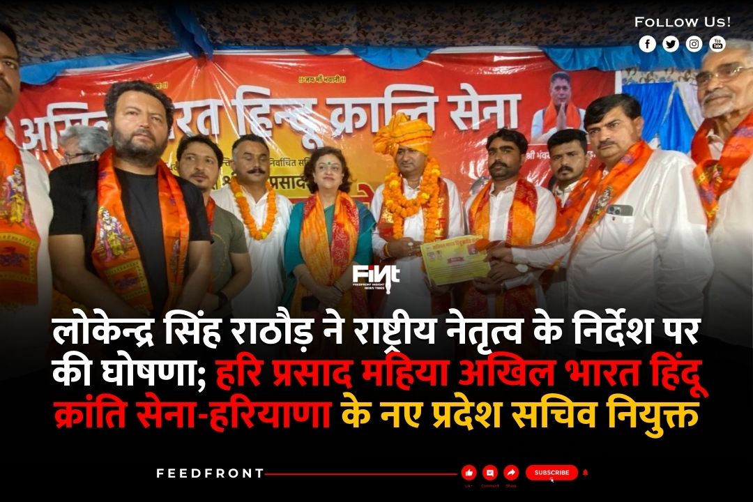 चंडीगढ़: हिंदुत्व और राष्ट्रवाद के प्रति समर्पित संगठन, अखिल भारत हिंदू क्रांति सेना ने हरियाणा इकाई के लिए एक महत्वपूर्ण नियुक्ति की घोषणा की है। श्री हरि प्रसाद महिया को संगठन की हरियाणा इकाई का नया प्रदेश सचिव नियुक्त किया गया है। इस नियुक्ति की घोषणा राष्ट्रीय संरक्षक भंवर सिंह पालाड़ा, राष्ट्रीय अध्यक्ष श्री आनंद सोनी एवं प्रभारी श्री भवानी सिंह के निर्देशानुसार हरियाणा प्रभारी श्री लोकेन्द्र सिंह राठौड़ द्वारा की गई।