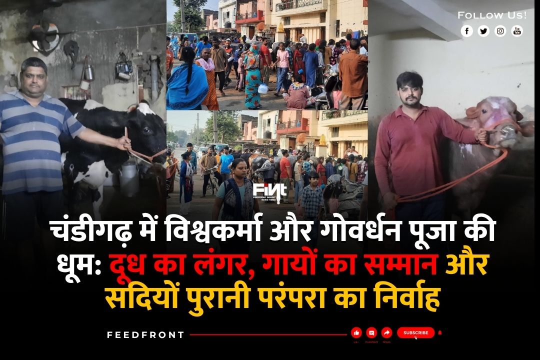 जतिन ने यह भी बताया कि उनके दादा-परदादा इस रीति-रिवाज को निभाते आ रहे हैं। पूरे चंडीगढ़ में उनके समाज के लगभग 40-50 ग्वाला समुदाय के परिवार रहते हैं, जो दूध डेयरी का काम करते हैं। इन परिवारों की एक विशेष परंपरा यह भी है कि दिवाली की शाम का सारा दूध और गोवर्धन पूजा के दिन का सारा दूध वे “फ्री लंगर प्रसाद” के रूप में बांटते हैं। सुबह से ही उनके घरों के बाहर दूध लेने के लिए लंबी कतारें देखी गईं, जो इस समुदाय की सेवा भावना और परंपरा के प्रति आस्था को दर्शाता है। यह पर्व चंडीगढ़ में धार्मिक श्रद्धा, सामुदायिक भावना और प्रकृति के प्रति सम्मान का प्रतीक बन गया है।