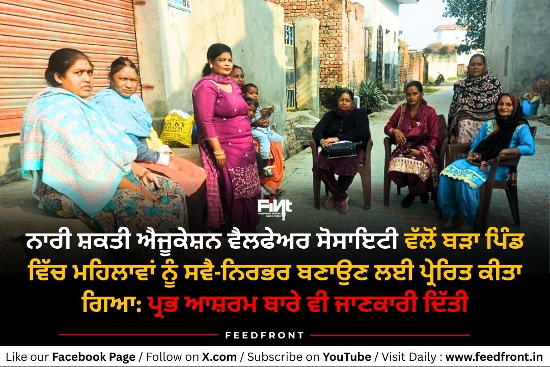 ਜਲੰਧਰ (ਬੜਾ ਪਿੰਡ): ਨਾਰੀ ਸ਼ਕਤੀ ਐਜੂਕੇਸ਼ਨ ਵੈਲਫੇਅਰ ਸੁਸਾਇਟੀ (ਨੂਸੀ) ਦੀ ਪ੍ਰਧਾਨ ਅੰਮ੍ਰਿਤਪਾਲ ਕੌਰ ਨੇ ਦੱਸਿਆ ਕਿ ਪਿੱਛਲੇ ਦਿਨੀਂ ਉਨ੍ਹਾਂ ਦੀ ਸੰਸਥਾ ਵੱਲੋਂ ਬੜਾ ਪਿੰਡ ਵਿੱਚ ਇੱਕ ਮੀਟਿੰਗ ਦਾ ਆਯੋਜਨ ਕੀਤਾ ਗਿਆ। ਇਸ ਮੀਟਿੰਗ ਵਿੱਚ ਪਿੰਡ ਦੀਆਂ ਆਸ਼ਾ ਵਰਕਰਾਂ ਅਤੇ ਵੱਡੀ ਗਿਣਤੀ ਵਿੱਚ ਔਰਤਾਂ ਨੇ ਸ਼ਿਰਕਤ ਕੀਤੀ, ਜਿੱਥੇ ਉਨ੍ਹਾਂ ਨੂੰ ਸਵੈ-ਨਿਰਭਰ ਬਣਨ ਲਈ ਪ੍ਰੇਰਿਤ ਕੀਤਾ ਗਿਆ।