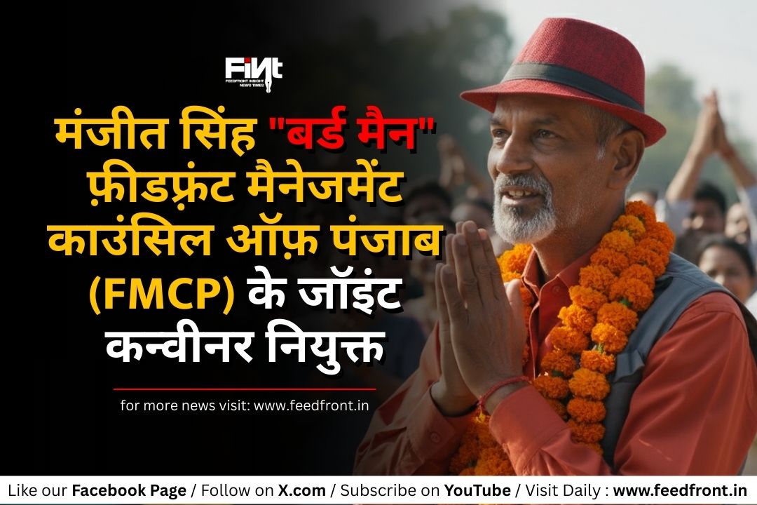 चंडीगढ़: समाज सेवा, पत्रकारिता और मानवता की एक जीती-जागती मिसाल, चंडीगढ़ के प्रसिद्ध मंजीत सिंह, जिन्हें लोग पूरे क्षेत्र में “बर्ड मैन” के नाम से जानते हैं, को फ़ीडफ़्रंट मैनेजमेंट काउंसिल ऑफ़ पंजाब (FMCP) का जॉइंट कन्वीनर नियुक्त किया गया है। FMCP ने यह पद उन्हें उनके वर्षों से जारी निस्वार्थ सामाजिक योगदान, ईमानदार पत्रकारिता और जनहित के लिए की गई अनूठी सेवाओं को देखते हुए प्रदान किया है।