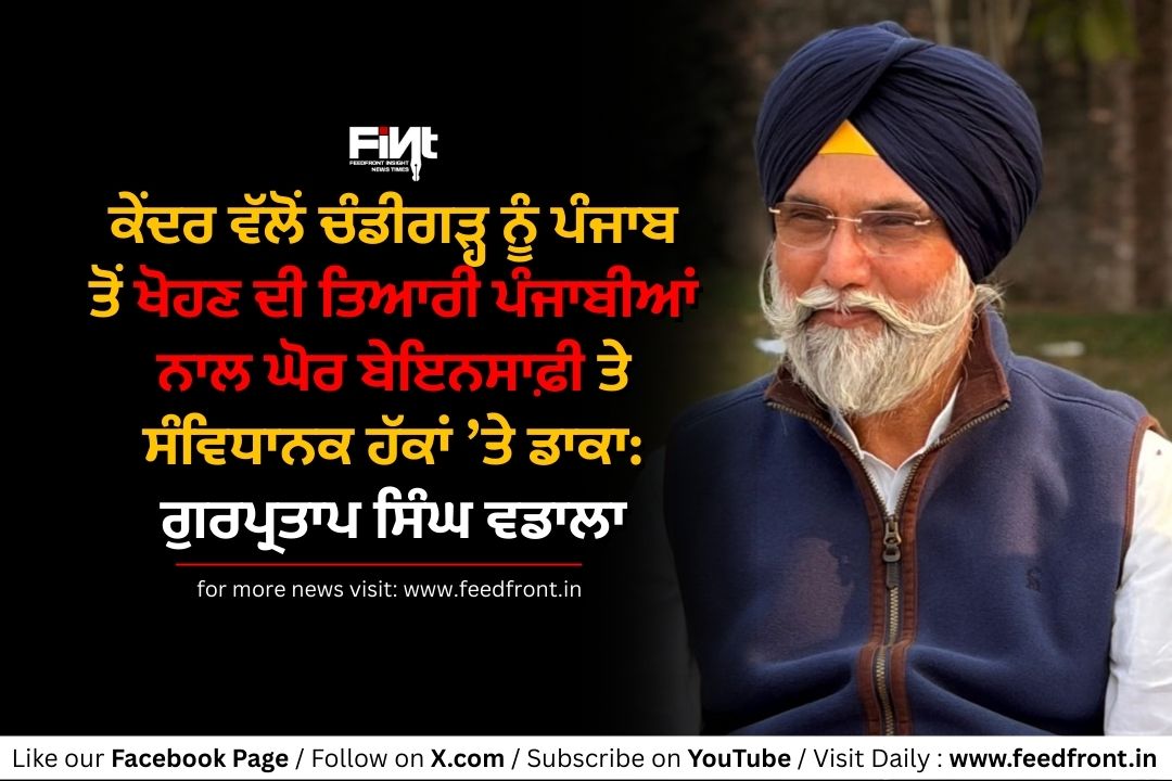 ਜਲੰਧਰ: ਸਾਬਕਾ ਵਿਧਾਇਕ ਅਤੇ ਸ਼੍ਰੋਮਣੀ ਅਕਾਲੀ ਦਲ ਦੇ ਸੀਨੀਅਰ ਆਗੂ ਜਥੇਦਾਰ ਗੁਰਪ੍ਰਤਾਪ ਸਿੰਘ ਵਡਾਲਾ ਨੇ ਕੇਂਦਰ ਸਰਕਾਰ ਵੱਲੋਂ ਚੰਡੀਗੜ੍ਹ ਨੂੰ ਪੱਕੇ ਤੌਰ ‘ਤੇ ਪੰਜਾਬ ਨਾਲੋਂ ਵੱਖ ਕਰਨ ਲਈ ਵਿਚਾਰੀ ਜਾ ਰਹੀ ਸੰਵਿਧਾਨਕ ਸੋਧ ‘ਤੇ ਤਿੱਖਾ ਪ੍ਰਤੀਕਰਮ ਪ੍ਰਗਟ ਕੀਤਾ ਹੈ। ਉਨ੍ਹਾਂ ਕਿਹਾ ਕਿ ਕੇਂਦਰ ਦਾ ਇਹ ਕਦਮ ਪੰਜਾਬੀਆਂ ਨਾਲ ਘੋਰ ਬੇਇਨਸਾਫ਼ੀ ਅਤੇ ਸੂਬੇ ਦੇ ਸੰਵਿਧਾਨਕ ਹੱਕਾਂ ‘ਤੇ ਸਿੱਧਾ ਡਾਕਾ ਹੈ, ਜਿਸ ਨੂੰ ਸਮੁੱਚੇ ਪੰਜਾਬੀਆਂ ਨੇ ਬਹੁਤ ਗੰਭੀਰਤਾ ਨਾਲ ਲਿਆ ਹੈ।