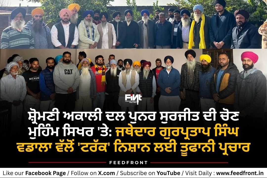 ਨਕੋਦਰ: ਜ਼ਿਲ੍ਹਾ ਪ੍ਰੀਸ਼ਦ ਅਤੇ ਬਲਾਕ ਸੰਮਤੀ ਦੀਆਂ ਚੋਣਾਂ ਦੇ ਮੱਦੇਨਜ਼ਰ, ਸ਼੍ਰੋਮਣੀ ਅਕਾਲੀ ਦਲ ਪੁਨਰ ਸੁਰਜੀਤ ਨੇ ਆਪਣੀ ਚੋਣ ਮੁਹਿੰਮ ਨੂੰ ਪੂਰੀ ਤੇਜ਼ੀ ਨਾਲ ਅੱਗੇ ਵਧਾ ਦਿੱਤਾ ਹੈ। ਪਾਰਟੀ ਦੇ ਸਾਂਝੇ ਉਮੀਦਵਾਰ ਪਰਮਿੰਦਰ ਸਿੰਘ ਹੀਰ ਚੱਕ ਕਲਾ ਦੇ ਹੱਕ ਵਿੱਚ ਸਕੱਤਰ ਜਨਰਲ ਜਥੇਦਾਰ ਗੁਰਪ੍ਰਤਾਪ ਸਿੰਘ ਵਡਾਲਾ ਨੇ ਖੁਦ ਕਮਾਨ ਸੰਭਾਲੀ ਹੋਈ ਹੈ ਅਤੇ ਪਿੰਡਾਂ ਵਿੱਚ ਸਿੱਧਾ ਸੰਪਰਕ ਕੀਤਾ ਜਾ ਰਿਹਾ ਹੈ।