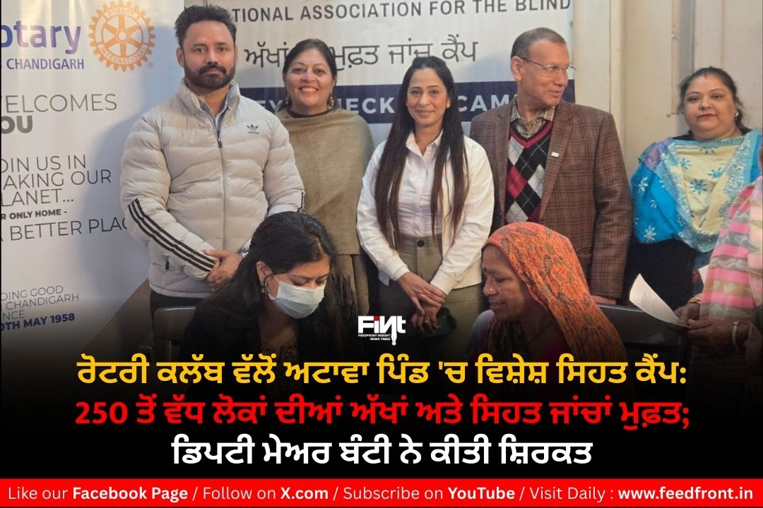 ਚੰਡੀਗੜ੍ਹ: ਆਮ ਲੋਕਾਂ ਨੂੰ ਬਿਹਤਰ ਸਿਹਤ ਸੇਵਾਵਾਂ ਪ੍ਰਦਾਨ ਕਰਨ ਦੇ ਮਕਸਦ ਨਾਲ ਪਿੰਡ ਅਟਾਵਾ ਸਥਿਤ ਸਰਕਾਰੀ ਡਿਸਪੈਂਸਰੀ ਵਿੱਚ ਰੋਟਰੀ ਕਲੱਬ ਚੰਡੀਗੜ੍ਹ ਵੱਲੋਂ ਇੱਕ ਵਿਸ਼ਾਲ ਸਿਹਤ ਜਾਂਚ ਕੈਂਪ ਦਾ ਸਫਲਤਾਪੂਰਵਕ ਆਯੋਜਨ ਕੀਤਾ ਗਿਆ। ਇਹ ਕੈਂਪ ਰੋਟਰੀ ਕਲੱਬ ਨੇ ਨੈਸ਼ਨਲ ਐਸੋਸੀਏਸ਼ਨ ਫ਼ੋਰ ਦ ਬਲਾਇੰਡ ਦੇ ਸਹਿਯੋਗ ਨਾਲ ਲਗਾਇਆ। ਇਸ ਮੌਕੇ ਚੰਡੀਗੜ੍ਹ ਨਗਰ ਨਿਗਮ ਦੇ ਸੀਨੀਅਰ ਡਿਪਟੀ ਮੇਅਰ ਸ੍ਰੀ ਜਸਬੀਰ ਸਿੰਘ ਬੰਟੀ ਵਿਸ਼ੇਸ਼ ਤੌਰ ‘ਤੇ ਹਾਜ਼ਰ ਹੋਏ।