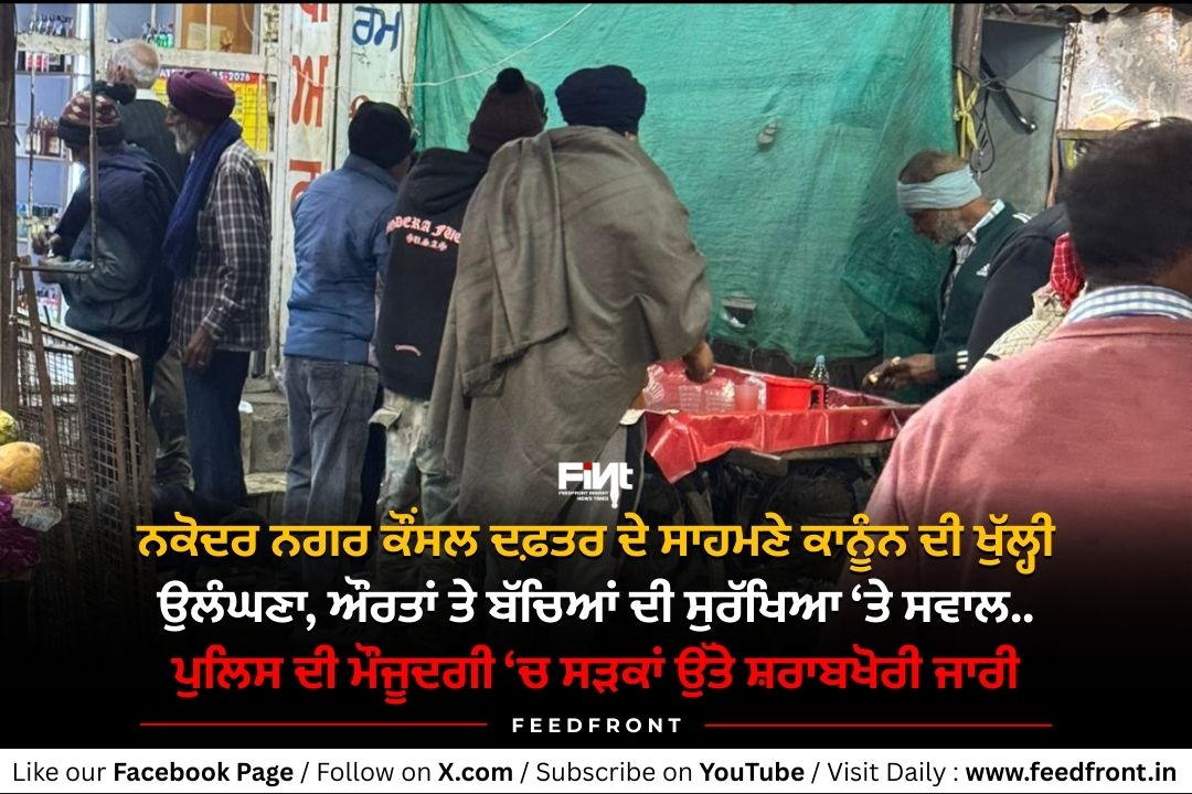 ਨਕੋਦਰ: ਨਕੋਦਰ ਸ਼ਹਿਰ ਦੇ ਦਿਲ ਵਿੱਚ ਸਥਿਤ ਨਗਰ ਕੌਂਸਲ ਦਫ਼ਤਰ ਦੇ ਬਿਲਕੁਲ ਸਾਹਮਣੇ ਕਾਨੂੰਨ-ਵਿਵਸਥਾ ਦਾ ਜੋ ਹਾਲ ਹੈ, ਉਹ ਪ੍ਰਸ਼ਾਸਨ ਦੇ ਸੁਰੱਖਿਆ ਦਾਅਵਿਆਂ ਦੀ ਫੂਕ ਕੱਢ ਰਿਹਾ ਹੈ। ਸ਼ਹਿਰ ਦੇ ਸਭ ਤੋਂ ਰੌਣਕਦਾਰ ਅਤੇ ਪ੍ਰਸ਼ਾਸਨਿਕ ਖੇਤਰ ਵਿੱਚ ਸ਼ਾਮ ਹੁੰਦਿਆਂ ਹੀ ਕਾਨੂੰਨ ਦੀਆਂ ਸ਼ਰੇਆਮ ਧੱਜੀਆਂ ਉਡਾਈਆਂ ਜਾ ਰਹੀਆਂ ਹਨ, ਜਿਸ ਕਾਰਨ ਸਥਾਨਕ ਨਿਵਾਸੀਆਂ ਖਾਸ ਕਰਕੇ ਔਰਤਾਂ ਵਿੱਚ ਭਾਰੀ ਰੋਸ ਅਤੇ ਡਰ ਪਾਇਆ ਜਾ ਰਿਹਾ ਹੈ।