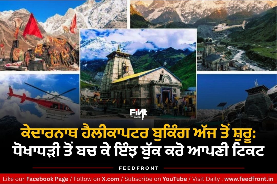 ਕੇਦਾਰਨਾਥ ਲਈ ਹੈਲੀਕਾਪਟਰ ਟਿਕਟਾਂ ਦੀ ਆਨਲਾਈਨ ਬੁਕਿੰਗ 11 ਅਪ੍ਰੈਲ 2026 (ਅੱਜ) ਸ਼ਾਮ 6 ਵਜੇ ਤੋਂ ਸ਼ੁਰੂ ਹੋ ਜਾਵੇਗੀ। ਸ਼ਰਧਾਲੂ ਸਿਰਫ਼ IRCTC ਦੀ ਅਧਿਕਾਰਤ ਵੈੱਬਸਾਈਟ heliyatra.irctc.co.in ਰਾਹੀਂ ਹੀ ਆਪਣੀ ਸੀਟ ਪੱਕੀ ਕਰ ਸਕਦੇ ਹਨ। ਮੌਜੂਦਾ ਸਮੇਂ ਵਿੱਚ ਇਹ ਬੁਕਿੰਗ 22 ਅਪ੍ਰੈਲ ਤੋਂ 11 ਮਈ ਦੇ ਵਿਚਕਾਰ ਯਾਤਰਾ ਕਰਨ ਵਾਲੇ ਸ਼ਰਧਾਲੂਆਂ ਲਈ ਖੋਲ੍ਹੀ ਜਾ ਰਹੀ ਹੈ।