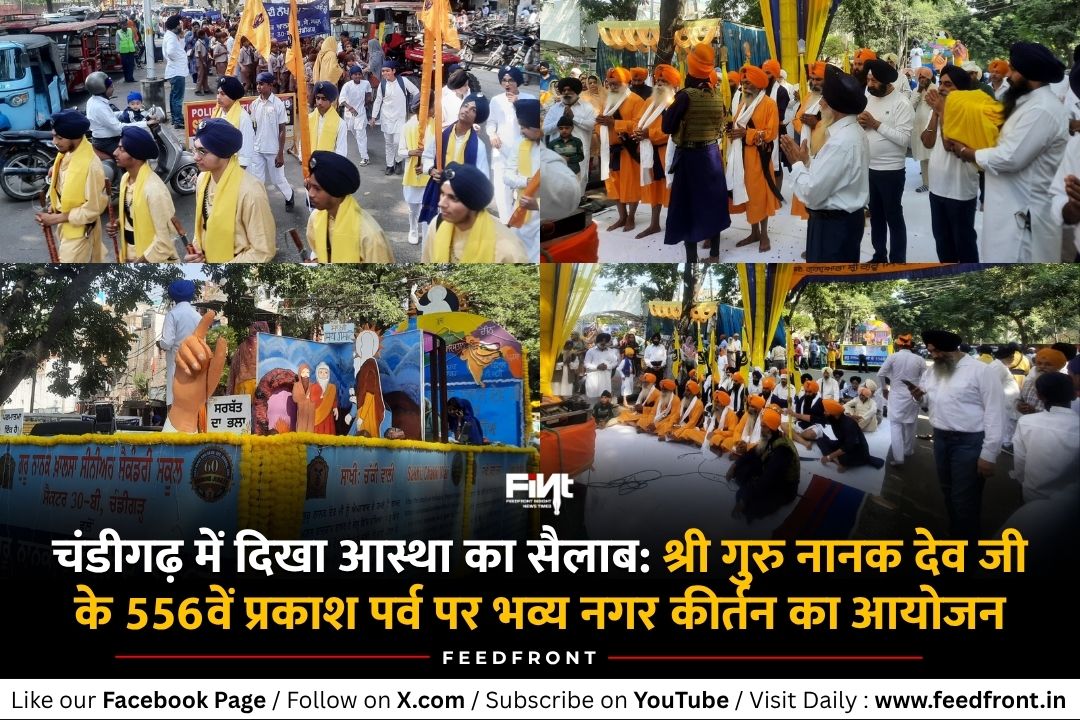 चंडीगढ़: सिखों के प्रथम गुरु, धन धन श्री गुरु नानक देव जी के 556वें पावन जन्म दिवस के अवसर पर आज चंडीगढ़ में एक विशाल नगर कीर्तन का आयोजन किया गया। यह नगर कीर्तन सुबह सेक्टर 19 स्थित गुरुद्वारा श्री सिंह सभा से आरंभ हुआ, जिसमें शामिल होने के लिए सुबह से ही श्रद्धालुओं का तांता लगा रहा।