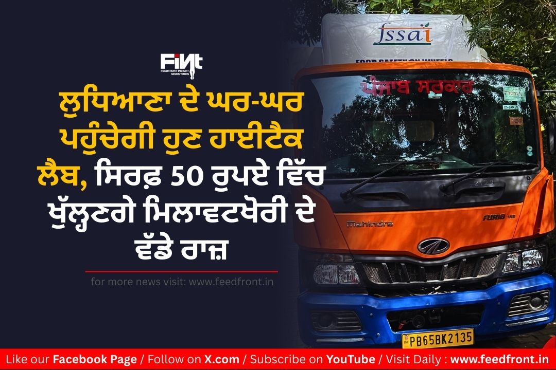 ਲੁਧਿਆਣਾ: ਲੁਧਿਆਣਾ ਜ਼ਿਲ੍ਹੇ ਵਿੱਚ ਲੋਕਾਂ ਦੀ ਸਿਹਤ ਨਾਲ ਖਿਲਵਾੜ ਕਰਨ ਵਾਲੇ ਮਿਲਾਵਟਖੋਰਾਂ ਦੀ ਹੁਣ ਖ਼ੈਰ ਨਹੀਂ, ਕਿਉਂਕਿ ਜ਼ਿਲ੍ਹਾ ਸਿਹਤ ਵਿਭਾਗ ਨੇ ਲੋਕਾਂ ਦੇ ਦਰਵਾਜ਼ੇ ਤੱਕ ਇਨਸਾਫ਼ ਅਤੇ ਜਾਂਚ ਪਹੁੰਚਾਉਣ ਲਈ ਇੱਕ ਵਿਸ਼ੇਸ਼ ਮੁਹਿੰਮ ਦਾ ਆਗਾਜ਼ ਕਰ ਦਿੱਤਾ ਹੈ। ਡਾ. ਅਸੀਸ ਚਾਵਲਾ ਦੀ ਅਗਵਾਈ ਹੇਠ ਸ਼ੁਰੂ ਕੀਤੀ ਗਈ ਇਹ ‘ਖਾਦ ਸੁਰੱਖਿਆ ਵੈਨ’ ਮੁਹਿੰਮ Food Safety and Standards Authority of India (FSSAI) ਦੇ ਸਖ਼ਤ ਨਿਯਮਾਂ ਅਧੀਨ ਤਿਆਰ ਕੀਤੀ ਗਈ ਹੈ। ਇਹ ਸਿਰਫ਼ ਇੱਕ ਗੱਡੀ ਨਹੀਂ, ਸਗੋਂ ਪਹੀਆਂ ‘ਤੇ ਚੱਲਦੀ ਇੱਕ ਅਜਿਹੀ ਆਧੁਨਿਕ ਪ੍ਰਯੋਗਸ਼ਾਲਾ ਹੈ ਜੋ ਮਿਲਾਵਟ ਦੇ ਵੱਧ ਰਹੇ ਕੇਸਾਂ ਨੂੰ ਨੱਥ ਪਾਉਣ ਅਤੇ ਲੋਕ ਸਿਹਤ ਦੀ ਰੱਖਿਆ ਲਈ ਇੱਕ ਵੱਡੀ ਉਮੀਦ ਬਣ ਕੇ ਸਾਹਮਣੇ ਆਈ ਹੈ।
